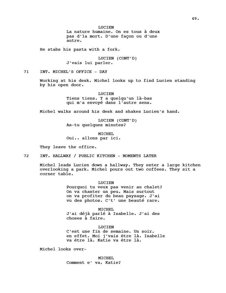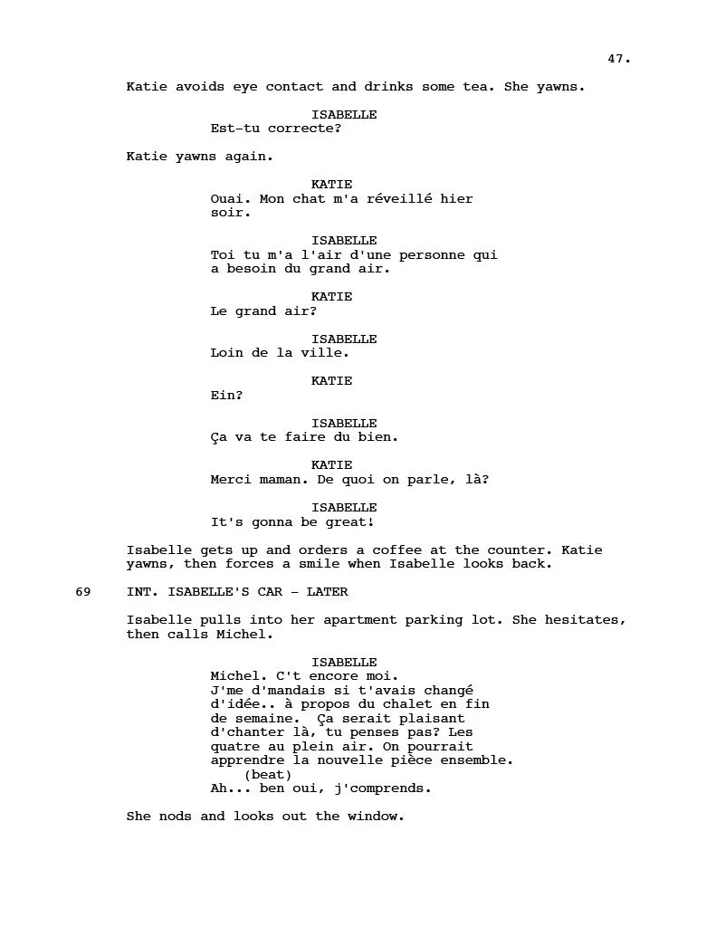 Bilingual Script Excerpt / Extrait du scénario bilingue (English-only excerpt to follow)